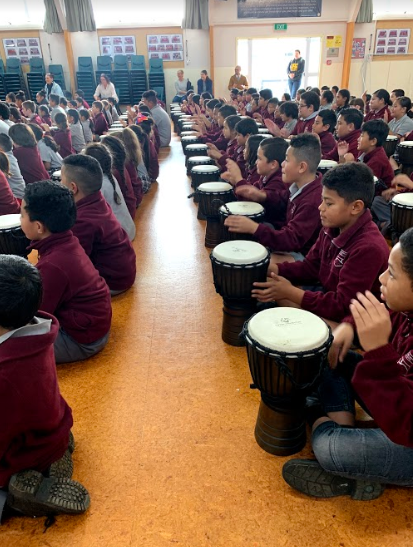 After morning tea we went to the hall and did drumming with Johnny he used a Djembe drum and we used a Djembe drum to play the rhythm and we had to play the same rhythm back. The rhythms were hard to do but we got the rhythms right after a couple of seconds. There were instrument like claves, there was a shaker. I thought Johnny was the greatest drummer ever at our school this year.